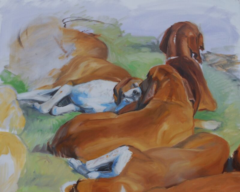 Hounds by a Fence